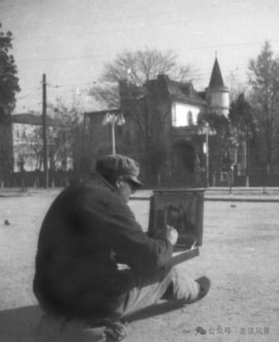 为星海公园门外的小楼写生。我所用的,是沈士清手工制作的油画箱。20世纪后期薄熙×执掌大连时期大力改造市容,大拆大建,这栋小楼没了。(陈光摄)