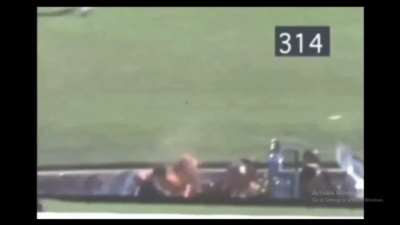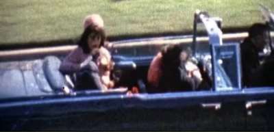 肯尼迪头顶中弹后头部和身体大幅后仰,杰奎琳扶稳肯尼迪时,其右侧头盖骨已被打掉一大块,头前部炸裂的血迹和碎片已消散。但高度清晰的视频截图仍能显示出子弹贯穿头部并炸裂后,右后方弹道折射残留的烟雾和飞落碎片尚未消散。内莉开枪后快速倒伏身体,杰奎琳明显受到惊吓,抛开肯尼迪爬上车后盖,肯尼迪随之倒在左侧座椅。