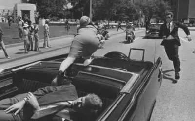 肯尼迪颈部被子弹贯穿,脊椎破裂,在痛苦中捂住咽喉,身体僵硬无法做出反应。杰奎琳见状靠近肯尼迪试图安抚他,注意力完全集中于肯尼迪。第一夫人没受过军事训练,明显忽视了前方的轻微枪声。