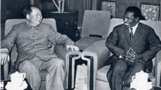 同日(1964年4月16日) 晚上,在长沙蓉园与陪同刚果客人从北京来长沙的周恩来谈话。随后,和周恩来一起会见刚果(布)〔1〕特使安托万、刚果(利)〔2〕非洲团结党中央政治局委员米都迪迪,张平化等在座。在谈到黑人遭受侮辱时,毛泽东说:只有压迫人的人,才是低贱的。不管哪个国家,哪个大陆,压迫人、杀人的人和政权才是低贱的。谈到卢蒙巴〔3〕因为没有掌握武装而被杀害时,毛泽东说:卢蒙巴并不是没
