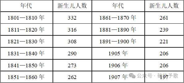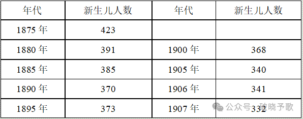 同1801年332个新生儿相比,1907年每1万名居民就减少135个新生儿。可以设想,这一结果使法国国务活动家和社会政治家大伤脑筋。但在这方面法国不是独一无二的。德国,特别是萨克森早就有过类似现象,而且出生率的下降比法国更快。德国每1万名居民的新生儿数量在下述年代分别是: