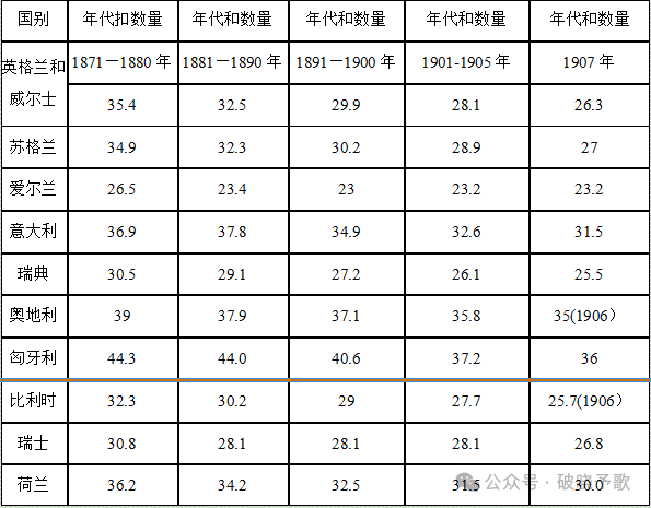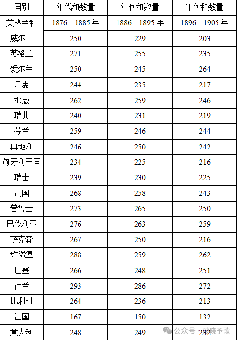 可见,新生儿减少是普遍现象,虽然减少率最高的是法国和爱尔兰,减少的速度最快的却是英格兰、德国(萨克森)和苏格兰。同样的现象我们在美国和澳大利亚都可以看到。我们如果不去考察普遍的出生率,而只是观察一下结婚者所生的子女,就是说,观察一下已婚妇女在育龄期,即15岁到49岁期间所生新生儿的平均数字,那么新生儿减少的倾向更为严重。