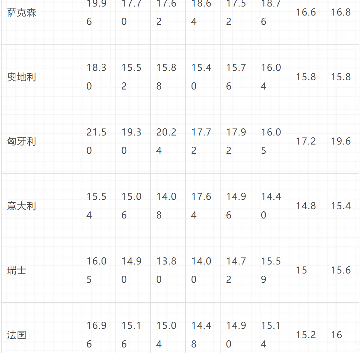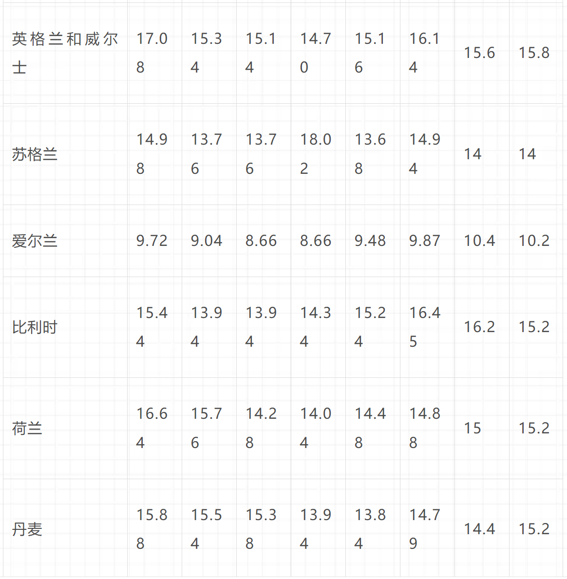 在各国的中等阶层居民中,每千名居民的结婚数目每年平均如下: