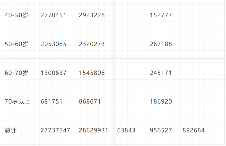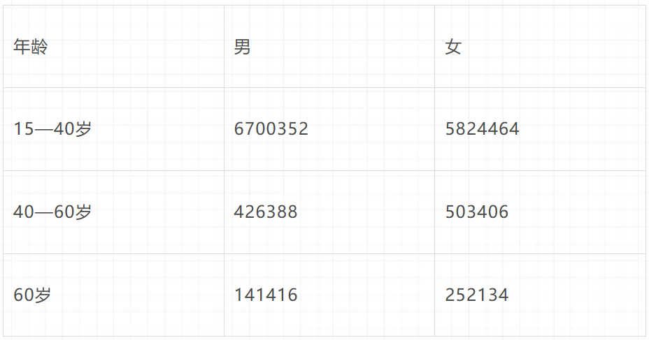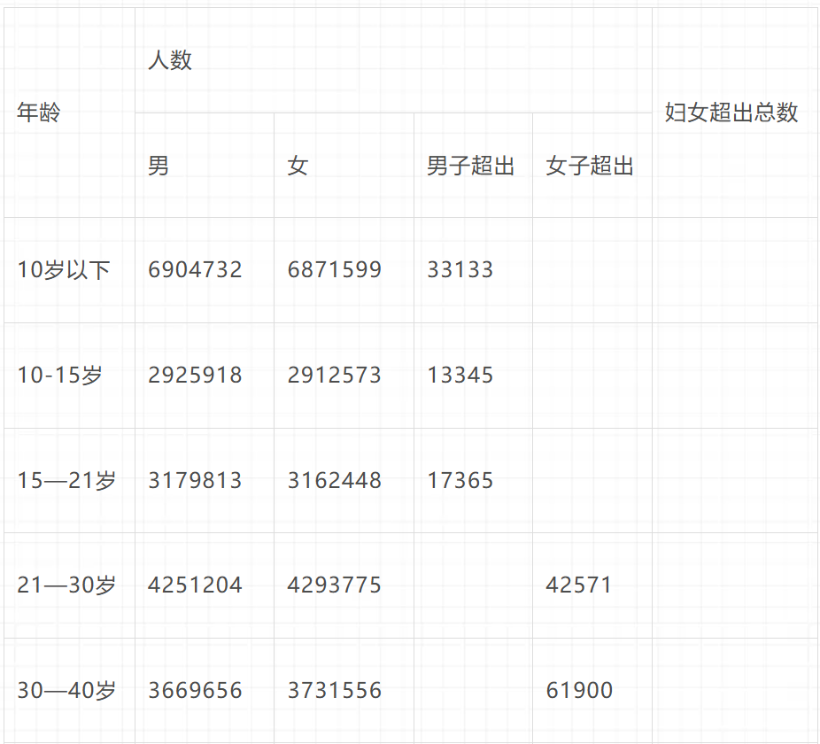 这张表显示了,21岁以下的男孩比21岁以下的女孩多。
