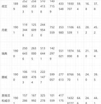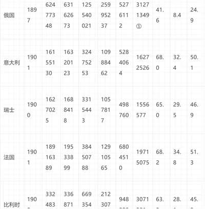 我们从下面的表格可以看出妇女在各个文明国家就业的情况,该表指明了男女就业者同全体居民的百分比。