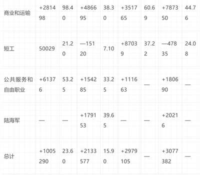 这张表表明,就业者的人数远比人口数量增长得快;流入生产中去的妇女劳动力增长幅度更大;男性就业者的人数比较稳定,而女性就业者的人数则呈相对和绝对的增长趋势,这样一来,妇女劳动日益排挤男子的劳动。