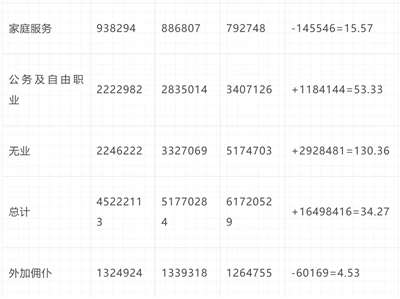 另一个特征是从事家庭服务的人只有少量增加,而佣人则有所减少,这一方面表明了收入情况允许雇用这类人的家庭数量相对减少,另一方面也表明了争取自身独立的无产阶级妇女越来越不喜欢从事这个职业。