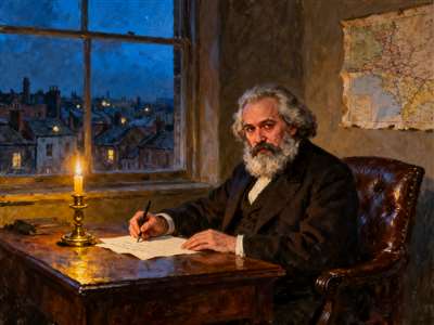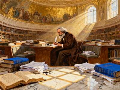 本文讲述了马克思流亡伦敦期间的贫困生活,家庭悲剧,以及他在大英博物馆中坚持学术研究,最终完成《资本论》的历程,展现了思想巨人在现实苦难中的坚韧与伟大。