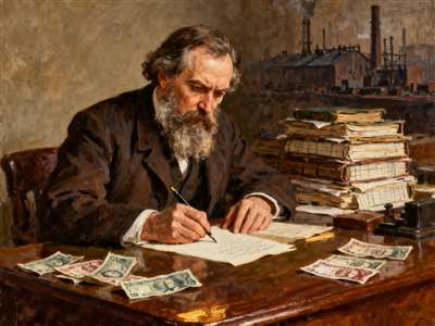 他研究资本的起源、积累、流通和增殖;他分析工人的劳动如何变成商品,又如何被异化;他推演这个体系的内在矛盾和最终的命运。