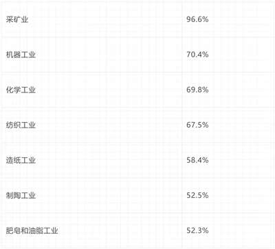 在其他行业中,1895年大企业便已占多数。现在,它的地位到处都得到进一步巩固(在金属加工业中占所有从业人员的47%,在印刷业中占43.8%,在运输业中占41.6%,在建筑业中占40.5%)。几乎所有行业的发展都对大企业有利。