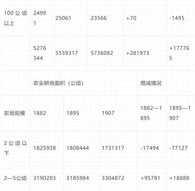 数量较少而所占面积很大的大农场的情况则有所不同。我们从前面的统计表中可以看出,23566个农场拥有用于农业的土地7055013公顷,比4384786个面积在5公顷以下的农场所拥有的土地还多出2019824公顷。