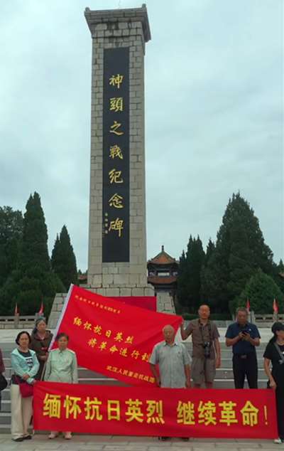 纪念抗日战争胜利80周年,缅怀抗日英烈,祭奠死难同胞,武汉人民重走抗战路。自2025年8月23日,从武汉八路军办事处、新四军军部旧址出发,经新五师张店、皖南事变泾县、新四军军部旧址、南京大屠杀旧址、雨花台、台儿庄、铁道游击队的微山岛、枣庄纪念馆、黄河花园口决堤遗址、长治市武乡县八路军总部旧址、八路军太行纪念馆、八路军烈士陵园、砖壁村百团大战指挥部、神头岭纪念馆、黄崖洞兵工厂旧址、阳泉百团大战纪念馆、百团大战烈士陵园、雁宿崖黄土岭纪念馆、狼牙山五壮士纪念碑、白洋淀雁翎队纪念馆、地道战清苑县冉庄、河南漯河受降路日军投降遗址、鸡公山武汉会战纪念馆,历时20天,经七个省,行程4600公里,于9月11日胜利返回武汉。