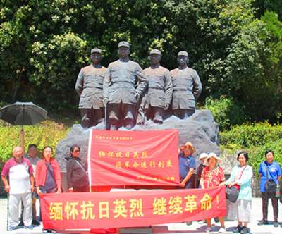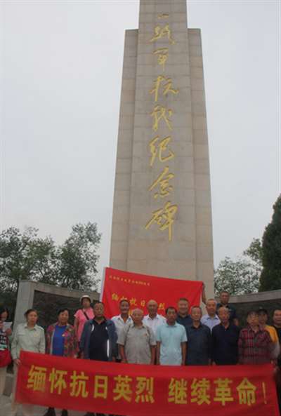 在瞻仰八路军抗战纪念碑,参观完八路军太行纪念馆后,来到武乡八路军烈士陵园敬酒献花后,举行缅怀抗日英烈仪式,由老工人刘明雄主持银河摄像。刘明雄深情的说,“吃水不忘挖井人,我们新中国的今天,中国共产党的今天,都是无数革命先烈用鲜血和生命换来的,一定要将革命先烈未尽的人民当家作主的事业进行到底!”