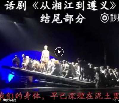 在话剧《从湘江到遵义》的剧情结尾,牺牲的英烈们返回人间,站在舞台上对用他们生命换来的今天昂首诘问: