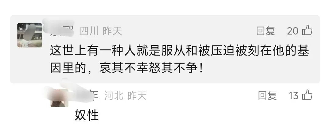 劳动人民本该是被压榨的受害者,却在话语体系中被塑造成“勤劳能吃苦”的自豪典范。久而久之,甚至有一些人也接受了这种逻辑,把过劳当作证明自身价值的方式。正是在这样的背景下,“奴性”一词才流行起来。但它并不是劳动人民自身的“天性”,而是资本和意识形态共同作用下的结果。