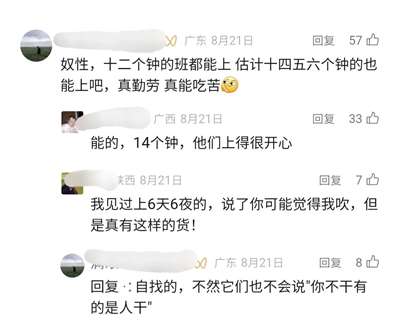 今天在网络和现实中,经常可以听到这样的话:“中国人真能吃苦,十二个钟头的班能上,十四五六个钟头也能上”;