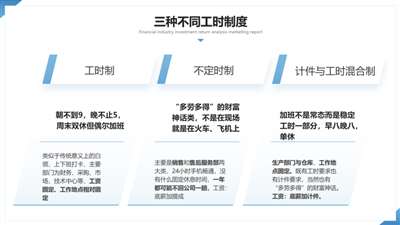 蓝色提到的这三种模式,与我国劳动法规定的工时制度有密切关联。“工时制”对应“标准工时工作制”。“不定时制”对应“不定时工作制”,这是一种特殊工时制度,法律上仅适用于企业高管、外勤人员等特定岗位。“混合制”则接近于“综合计算工时工作制”,同样是特殊工时制度。在实践中,许多企业对这些特殊工时制度的滥用,是导致劳动者权益受损的重要原因。