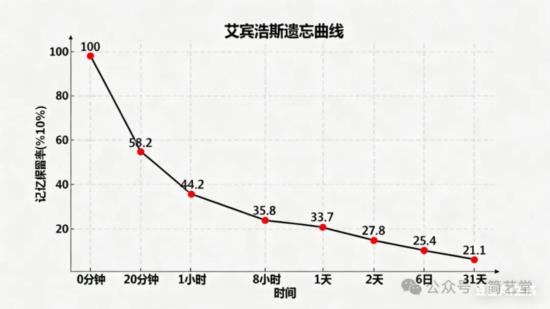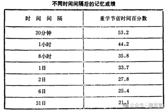 艾宾浩斯遗忘曲线所依据的实验数据很多,下表为其实验结果一例: