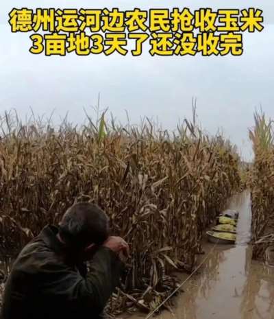 商丘的李大爷也自己人工收了两亩多。由于地湿,三轮车也会陷入泥土之中,他只好砍了玉米秸秆铺在地上,才把三轮车开进自己的玉米田里。不过,人工掰玉米费时费力,而人毕竟不是机器,李大爷说,“头天能掰一亩地,第二天就掰不了了,只能掰半亩了。”