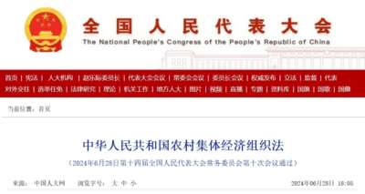 《中华人民共和国农村集体经济组织法》2024年出台了,今年5月1日正式生效了。