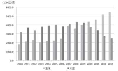 [4] 美国则相反:大豆比玉米享有更多来自政府的补贴,所以大豆种植面积大幅扩张。