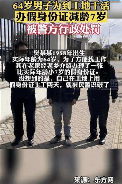 (他本身已经64岁了,但是怕工地不要他,于是便花钱办了一张假身份证,将年龄改成了57岁)