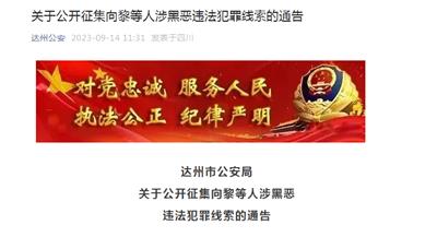 9月14日,达州公安发布了一条征集黑恶团伙违法犯罪线索的通告。
