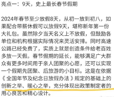“2024春节放8天假”,据说是“创新之举”、“暖心之举”,体现了“用心良苦”、“精心设计”。