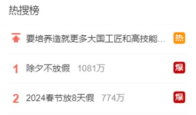 2024放假具体安排刚刚公布,两个相关话题就占据了热搜榜前两名。