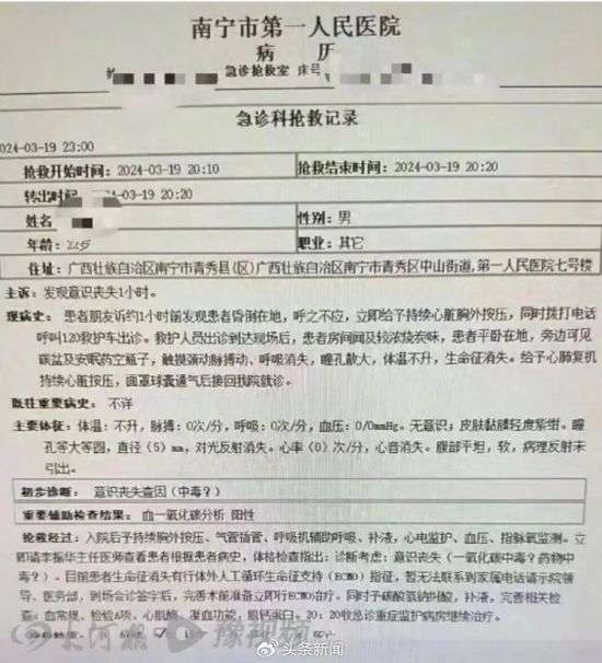 6天后,3月19日晚,网传南宁市第一人民医院,悲剧重现,一名22岁实习生烧炭自杀。