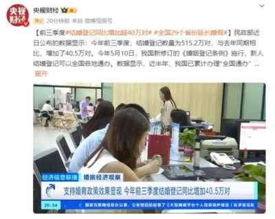可见,2025年前三季度结婚登记同比增加40.5万对,离婚登记同比增加11万对。