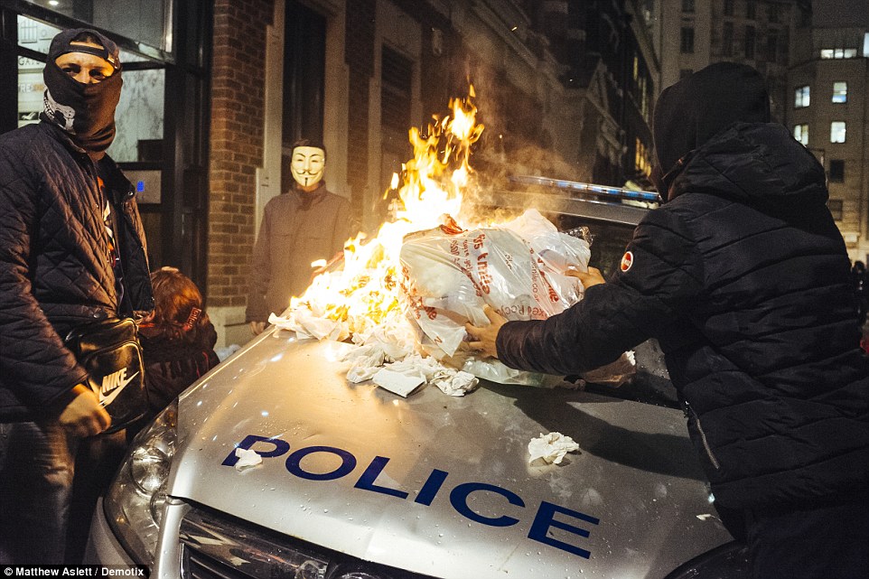 数千人昨晚参加以反资本主义为诉求的“百万面具游行”,他们抗议政府紧缩开支以及加强监管。有些民众在伦敦市中心放火烧警车,与镇暴警察起冲突。