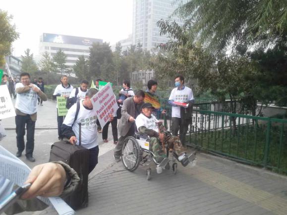 下面是北京志愿者10月18日散步宣传和抗议活动的照片: