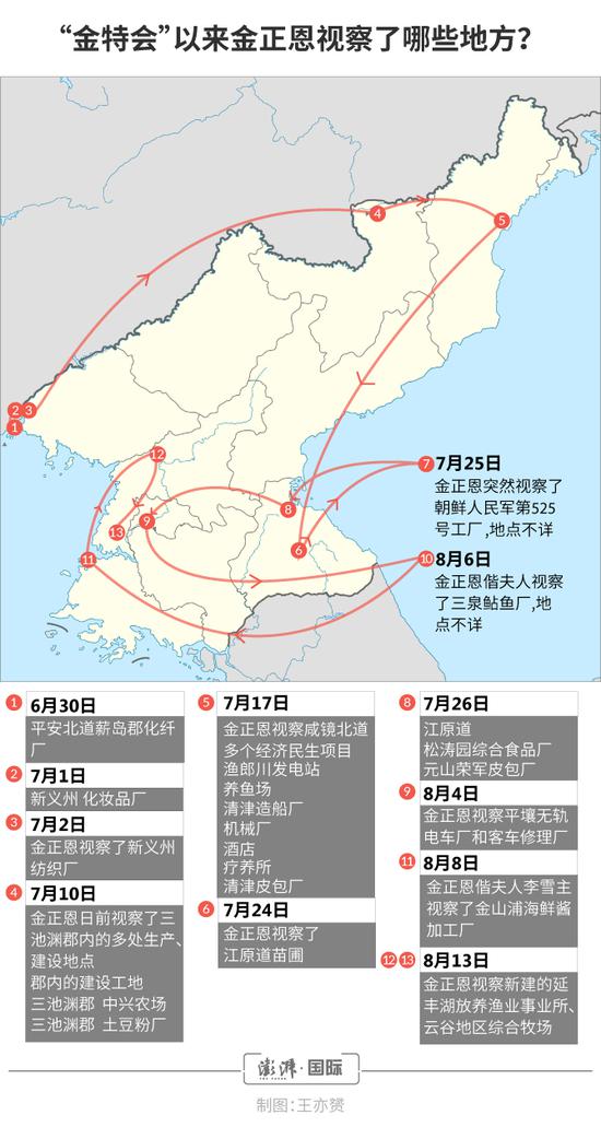 “金特会”之后,从6月30日开始,朝鲜中央通讯社前后共有25篇报道,详细介绍了金正恩考察各地的具体情况。