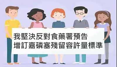 2019年8月2日,卫福部宣布暂缓增列宽农药草甘膦残留容许量标准,纷扰近百日的法规修订案暂时划下句点,这场胜利完全归功于台湾各地关心农业与食品安全民众的共同努力。为了挡下增列草甘膦食品残留容许量标准法案,上下游新闻市集、台湾无基改推动联盟、校园午餐搞非基行动等民间团体共同发声、一起行动,组织召开了记者会和联署活动,向台湾卫福部部长信箱写信,表达民众对大幅放宽除草剂草甘膦残留量的担忧和不满。台湾民间团体行动简介如下: