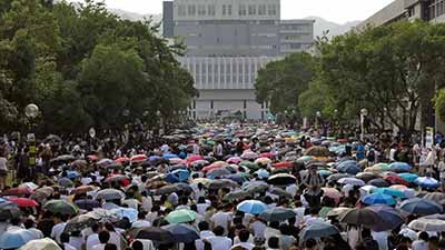 据《苹果日报》9月30日报道,学联共动员属下8个学校共6000多人参加集会。其中港中大有4000人在抗议地点开会,决议无限期罢课。
