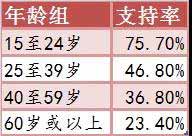 15岁到24岁刚好对应高中生、本科生和初入社会的上班族(或者研究生),被调查者中大部分支持占中。