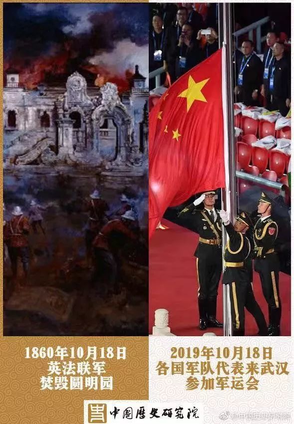 1860年10月18日第二次鸦片战争期间,被誉为“万园之园”的圆明园惨遭英法联军大火焚毁。清政府在英法联军烧毁圆明园后,接受了侵略者提出的全部条件,分别与英、法两国签订了屈辱的《北京条约》。
