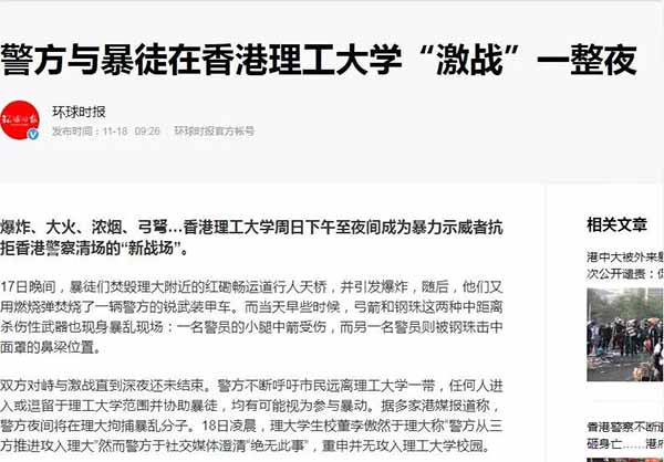 香港警察对占领香港理工大学的曱甴采取断然措施,数百名曱甴被捕,得到广大市民和大陆人民的拥护。