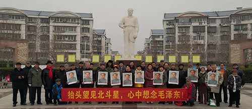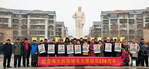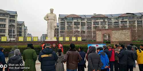 12月22日上午10点,天津市部分共产党员和革命群众来到1958年毛主席曾经视察过的原天津市东郊区新立村大队现新立村毛主席像广场举行纪念毛主席诞辰126周年活动。