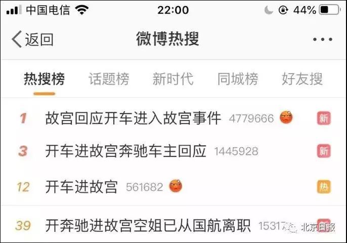 “大奔”开进故宫太和门广场引发众怒,故宫、国航、奔驰车主接连回应,昨晚连上四个热搜。