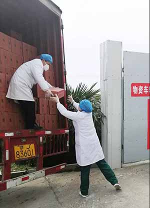 接到任务后,麻城分厂厂长安晓广立即安排相关事宜。在麻城市人大副主任汪先启等领导大力支持下,经过多方努力,2月10日,第一批满载着5000件南街村方便面产品的货车,分别驶入麻城市人民医院和麻城铁路医院,车头上鲜红的“河南省南街村援助湖北物资”的条幅,霎时温暖了抗疫一线医务人员的心。“麻城市人民医院全体干部职工感谢你们的爱心行动,向你们表示由衷的感谢和崇高的敬意!”“麻城铁路医院全体医护人员衷心感谢你们的慷慨解囊和无私帮助!我们一定要众志成城,共同打赢这场抗疫阻击战!”两家医院表达了对南街村的由衷谢意。