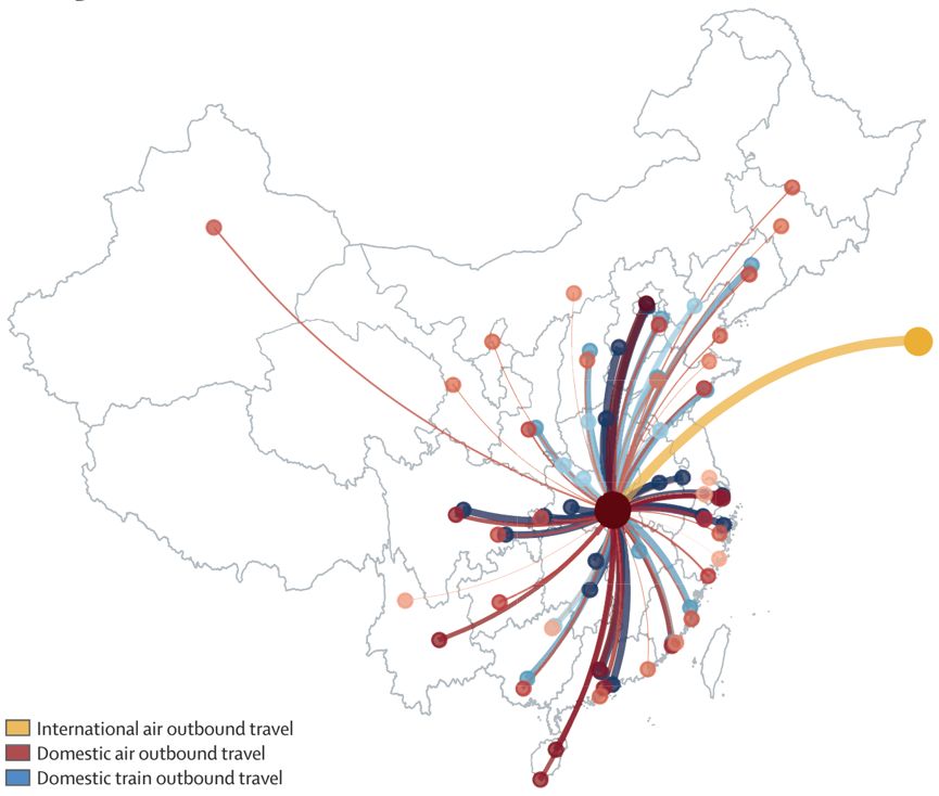 国外研究根据武汉交通流量估算的疫情传播趋势。注:图片来源https://doi.org/10.1016/S0140-6736(20)30260-9