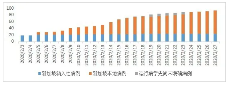 新加坡疫情分析可以看出,新加坡的疫情控制成功很重要的特点即是本地病例没有呈现明显的增长。图片制作:华山感染,数据来源:截至2/27的WHO官方网站