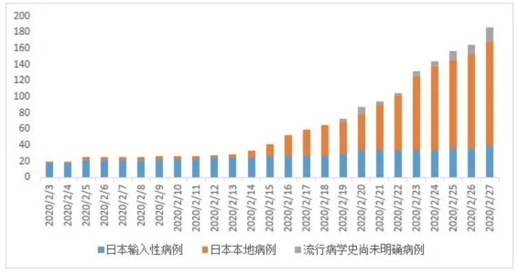 截至2月27日,日本本土确诊147例患者和17例无症状携带者。目前日本疫情也已经由输入型转为国内多发局面,部分地区出现小规模聚集性感染,但尚没有观察到大规模传播的区域。
