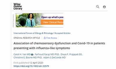 突然失去味觉和嗅觉应成为筛查COVID-19的一部分