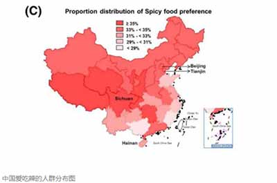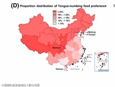 研究发现,爱吃辣的程度与糖尿病发病率、空腹血糖和餐后血糖水平呈现反比关系。而喜欢“麻”这个口味同样也与空腹血糖水平呈现反比关系。研究中最后一种口味为水煮饮食,喜爱人群主要集中在四川。