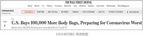 据《华尔街日报》4月29日报道,日前,联邦政府又订购了10万个收尸袋,根据政府官员的说法,准备这些物品是在“未雨绸缪”,为今年秋冬季可能再度暴发的新冠疫_情提前做准备。