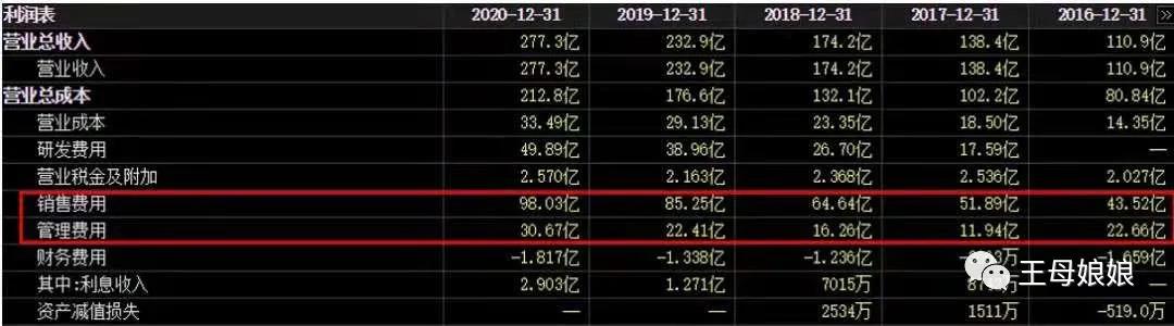 我们可以来看看A股第一牛叉的恒瑞医药几年的财务报表,画红线的两项分别是:管理费和财务费