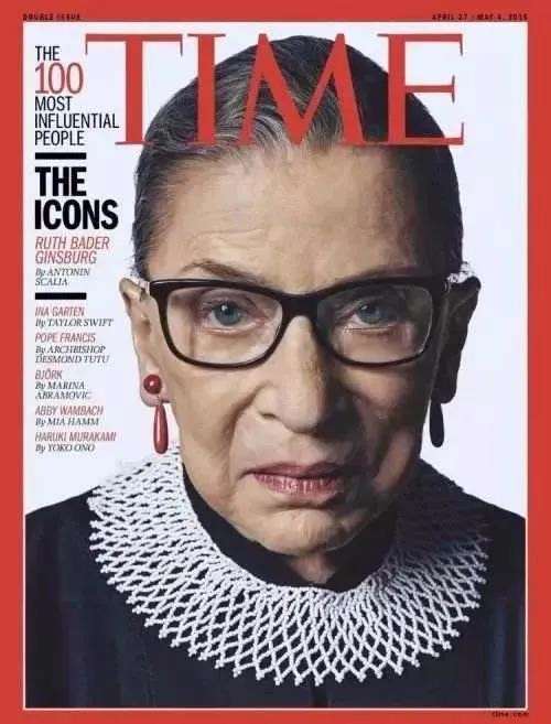 2015年,美国《时代》周刊将金斯伯格列入年度全球百大最具影响力的人物,她是唯一入选的最高法院大法官(来源:sohu.com)